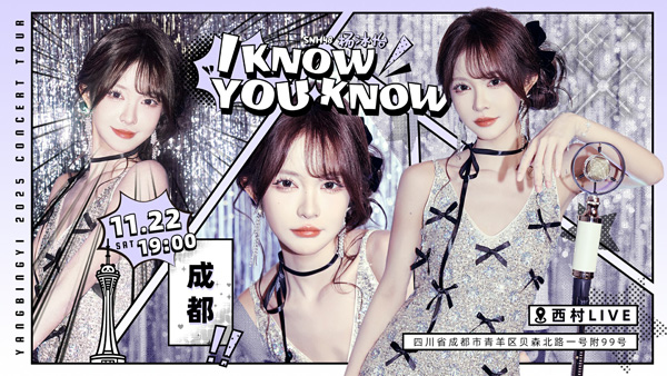 巡演首站定于11月22日的成都,杨冰怡与粉丝们共同一起这一场I KNOW YOU KNOW的双向奔赴。12月20日圣诞前夕,她将在上海与粉丝们继续近距离接触,展开巡演第二站。她的巡演第三站将于2026年1月10日来到广州,期待杨冰怡的精彩表演。