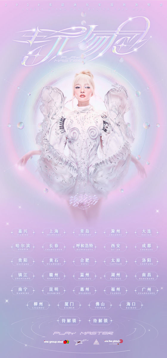 2026 张韶涵「玩家」巡回演唱会(Angela Zhang Play Master Tour 2026)更多场次站点详情请持续关注IMC Live Global及天涵有限公司Angmuzik等官方媒体平台,诸位玩家,敬请期待!