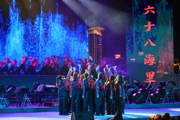 演出以交响合唱海峡组歌《直挂云帆济沧海》的八个章节为主线,创新性融入海峡舞集《六十八海里》中的舞蹈,形成歌、舞、乐相互交织的舞台呈现。整台作品既展现宏伟磅礴的史诗气质,又彰显细腻深情的艺术表达,营造出恢弘壮阔、兼具民族性与时代感的艺术风格。