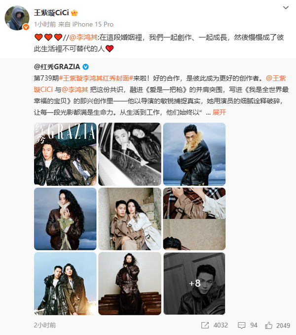亚洲明星网www.asiacool.com “在这段婚姻里,我们一起创作、一起成长,然后慢慢成了彼此生活里不可替代的人。”11月3日,李鸿其通过社交媒体宣布与王紫璇已婚的喜讯,并附上两人共同登封的《红秀GRAZIA》封面大片。