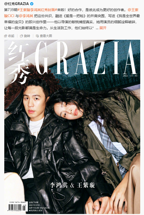 在《红秀GRAZIA》第739期封面故事中,王紫璇与李鸿其以Burberry情侣装造型亮相,展现了默契十足的时尚表现力。
