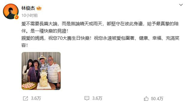 JJ的配文更是戳人:“爱不需要长篇大论,而是无论晴天或雨天,都坚守在彼此身边,给予最真挚的陪伴。”没有华丽辞藻,全是实在的温柔,既表白了女友,也给足了妈妈生日的仪式感。评论区里,粉丝们一边祝林妈妈生日快乐,一边调侃“终于等到你,还好我没放弃”,毕竟追了JJ这么多年,谁不想看他收获幸福呢?