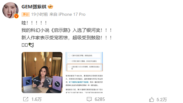 银河奖组委会的回应,不仅平息了针对邓紫棋《启示路》一书的争议,也清晰传递了当前科幻领域的开放信号。