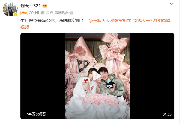 2026年2月7日下午13点14分,羽毛球队队员王昶在社交平台发布了这条官宣喜讯。几乎同时,乒乓球女队队员钱天一也晒出求婚视频,配文“生日愿望是嫁给你,睁眼就实现了。”