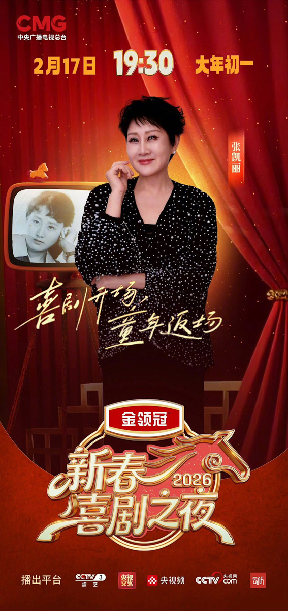 在央视《新春喜剧之夜》节目中,凯丽搭档周小斌、祝绪丹、何欢带来小品《老舅来了》;在北京卫视春晚的舞台上,凯丽搭档蒋龙、左凌峰、姜超、李嘉琦等演员,出演了小品 《夜空中最亮的星》。两个小品反响都极为热烈,凯丽凭借几十年深厚的表演功底,将生活化的细节与精准的情绪表达融为一体,为观众带来欢乐笑声的同时,更多了几分温暖与治愈。