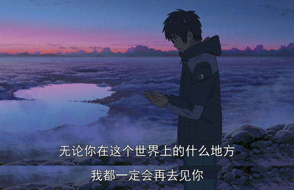 赏析:这是泷在得知三叶已于三年前的彗星灾难中去世后,决心逆转命运,前往“彼世”黄昏之时与她相见的誓言。也是全片最核心、最催泪的告白。